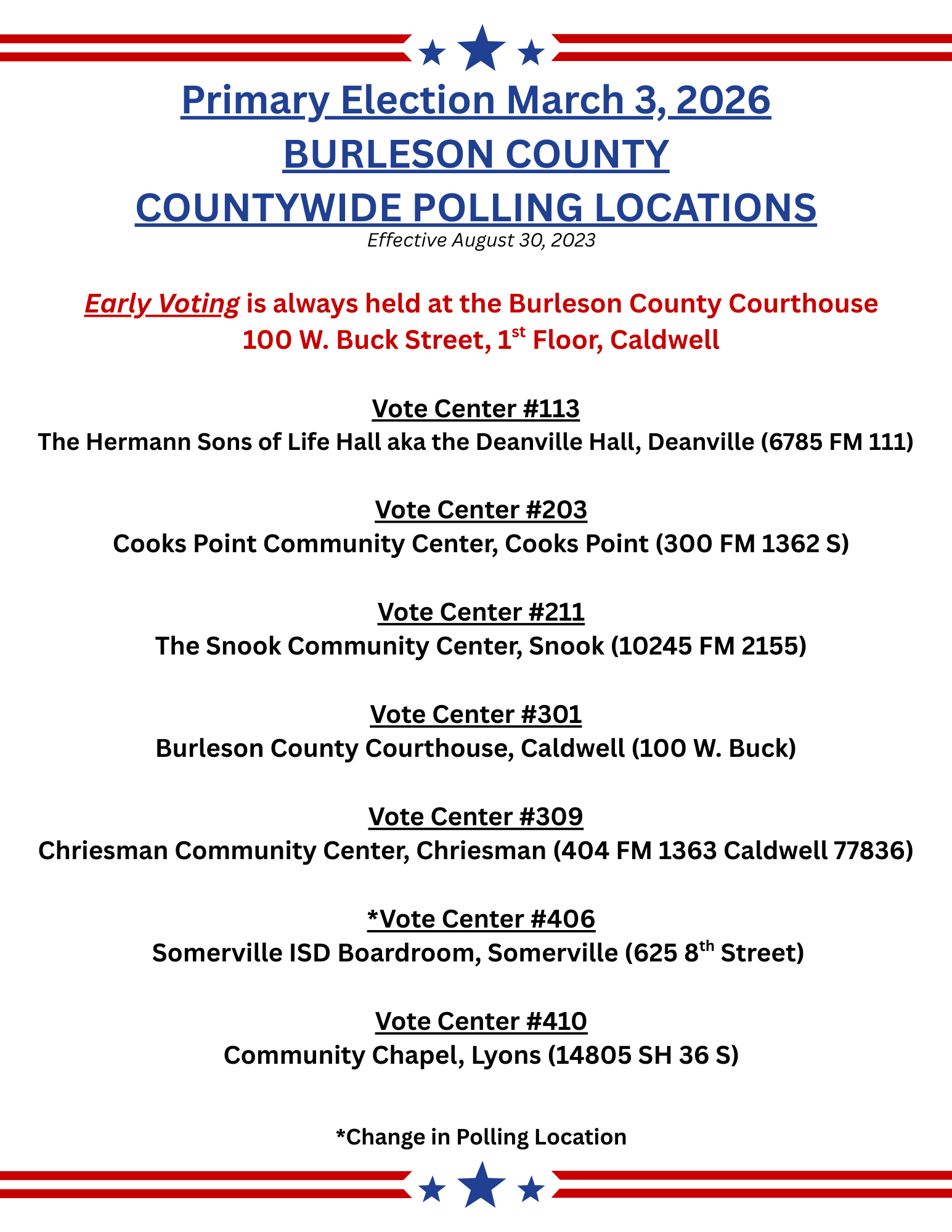Burleson County Courthouse, 1st Floor, Suite 105, Caldwell, TX 77836